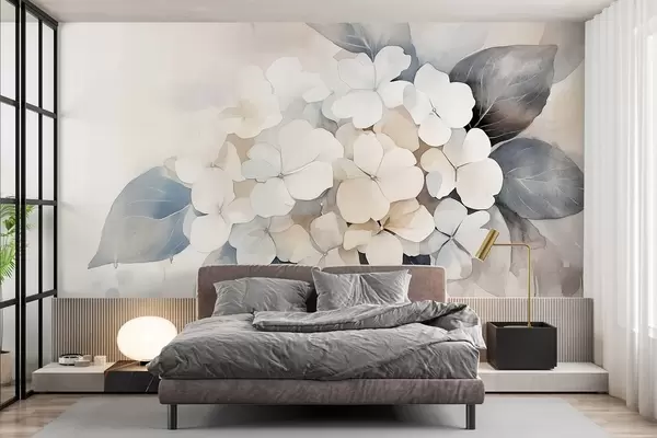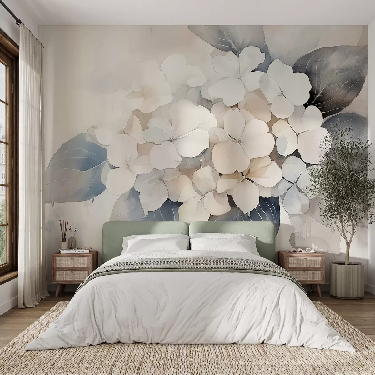Valokuvatapetti Hortensia kukka, pehmeät värit, vesivärityyliin Nr w02491
