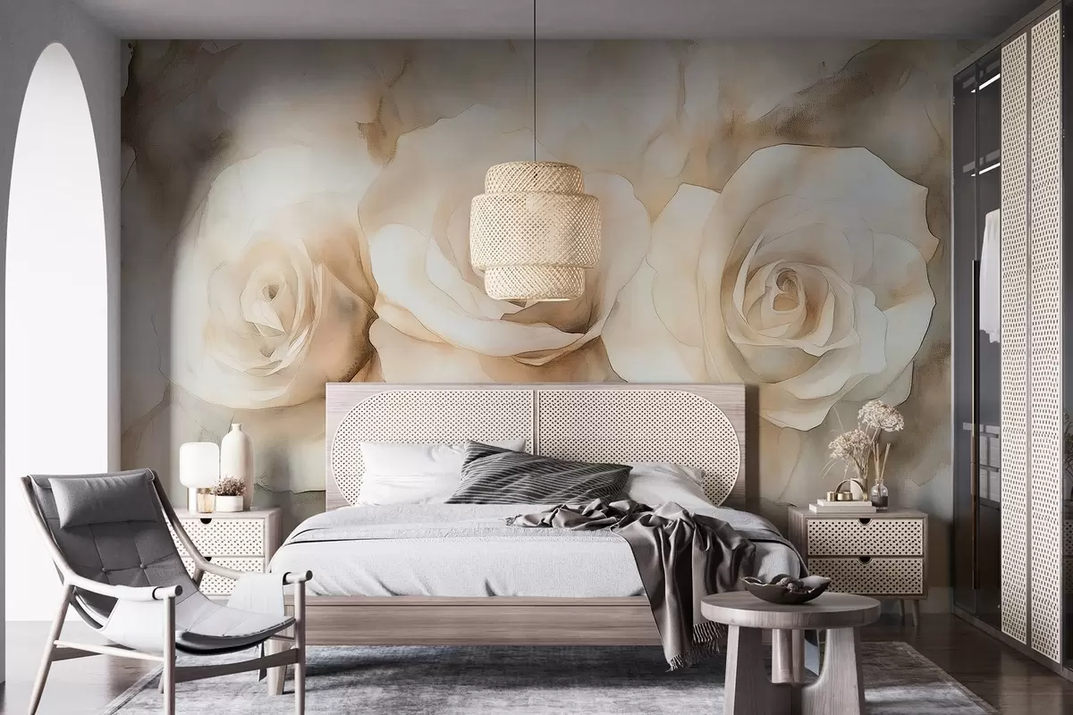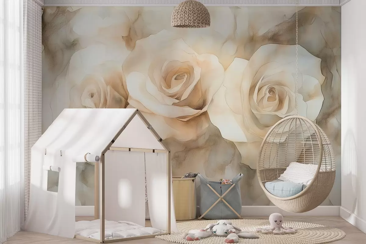 Valokuvatapetti Kauniita ruusuja, vesivärityyli, beige värit, boheemi Nr w02492
