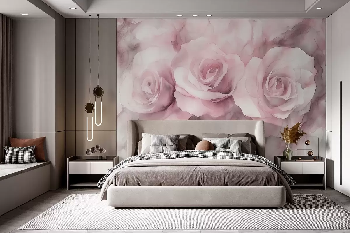 Valokuvatapetti Kauniit ruusut, vesivärityyli, vaaleanpunaiset värit, boheemi tyyli Nr w02492v1