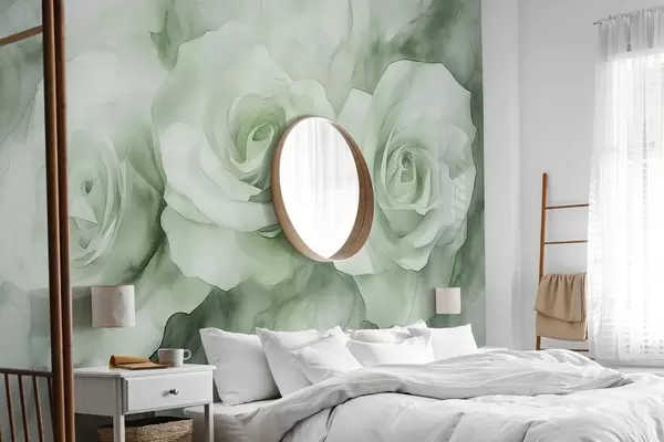 Valokuvatapetti Kauniita ruusuja, akvarelli tyyli, vihreät värit, boheemi Nr w02492v2