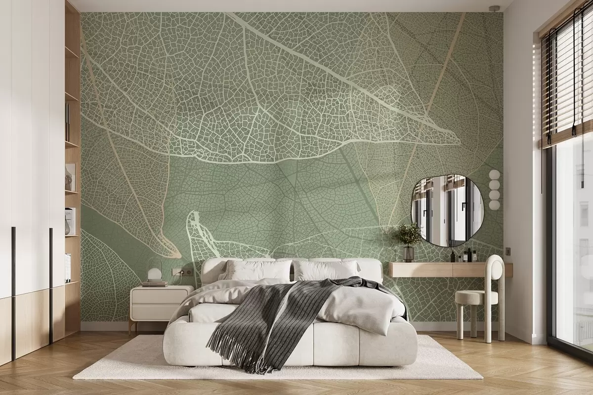 Valokuvatapetti lähikuva lehdistä, joiden suonet ovat vaaleanvihreitä Nr w02520