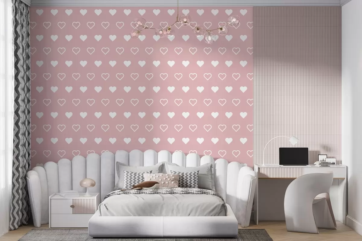Valokuvatapetti minimalistinen sydänpainatus vaaleanpunaisella taustalla Nr w02548