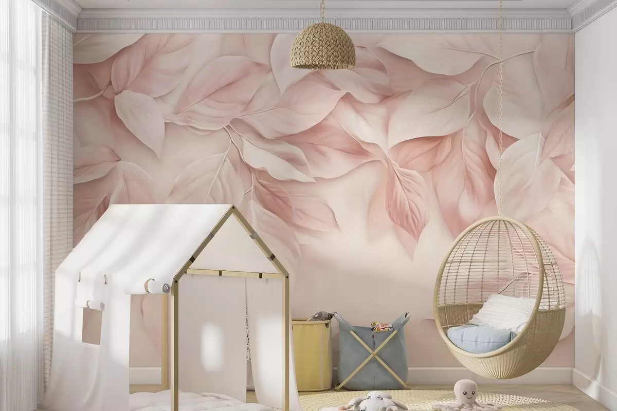 Valokuvatapetti herkkä vaaleanpunainen lehdet tytön makuuhuoneeseen Nr w02549