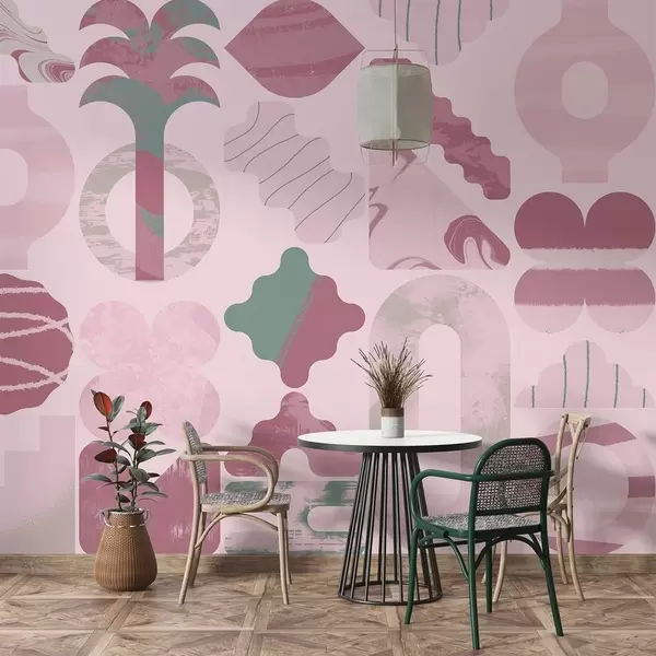 Valokuvatapetti erilaisia mielenkiintoisia muotoja, modernia geometriaa vaaleanpunaisissa väreissä Nr w02550