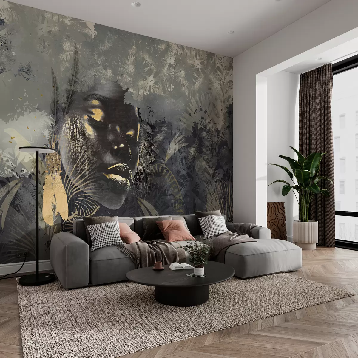 Valokuvatapetti Maaginen Afrikka sademetsä, tyttömäinen ja vektorielementtejä Nr w02642