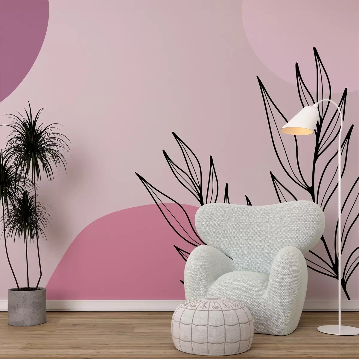 Valokuvatapetti vaaleanpunainen abstraktio lehtien kanssa Nr w02666