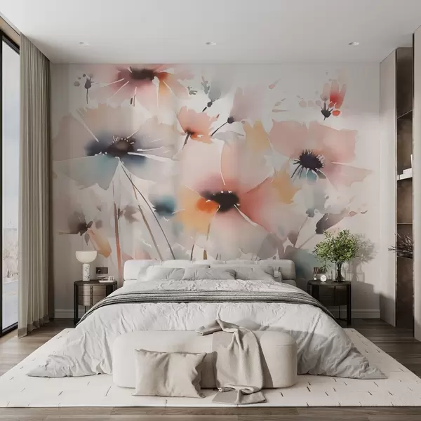 Valokuvatapetti Siluetteja kukkia jäljitelmä sumea akvarelliväri Nr w02726