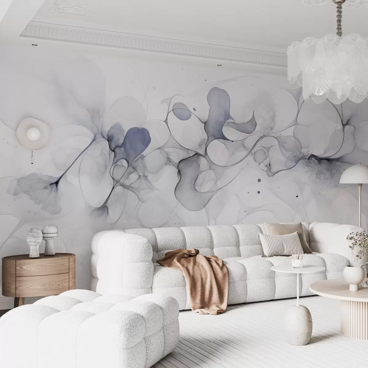 Valokuvatapetti Sujuva taidetyyli, abstraktio, pehmeät harmaat värit Nr w02745v3