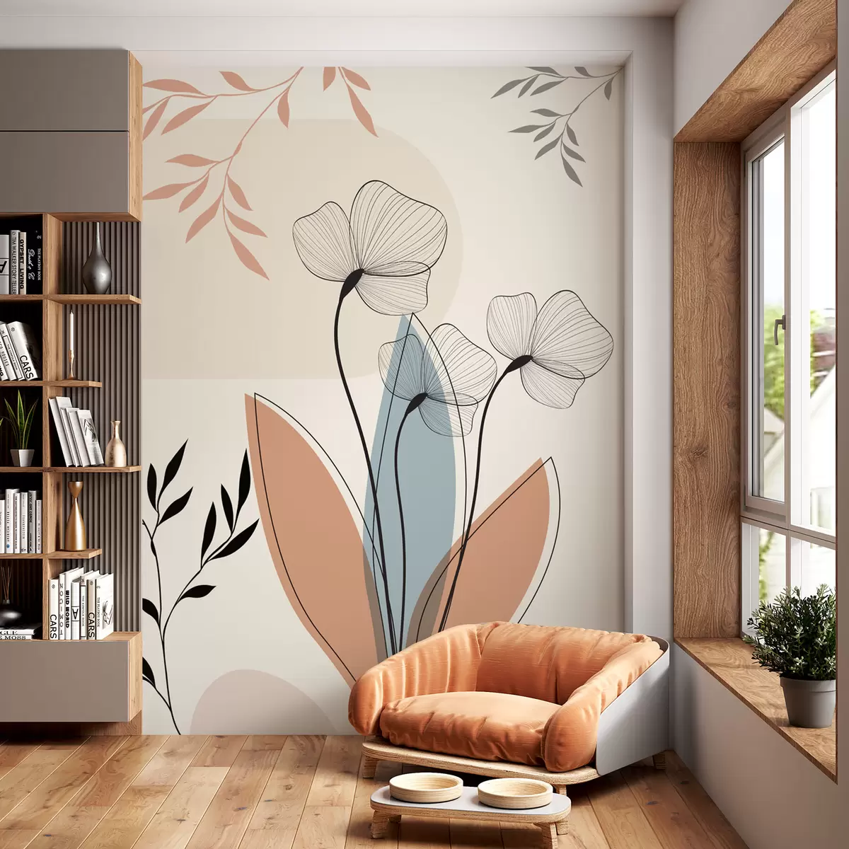 Valokuvatapetti Boho tyyli kukkia ja oksia Nr w02754