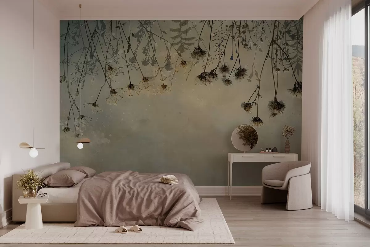 Valokuvatapetti Luonnonkukkia roikkuu ylhäältä lämpimissä väreissä Nr w02877