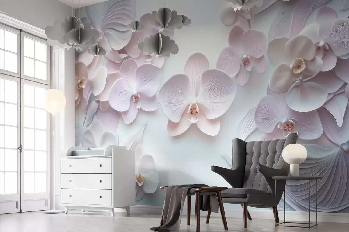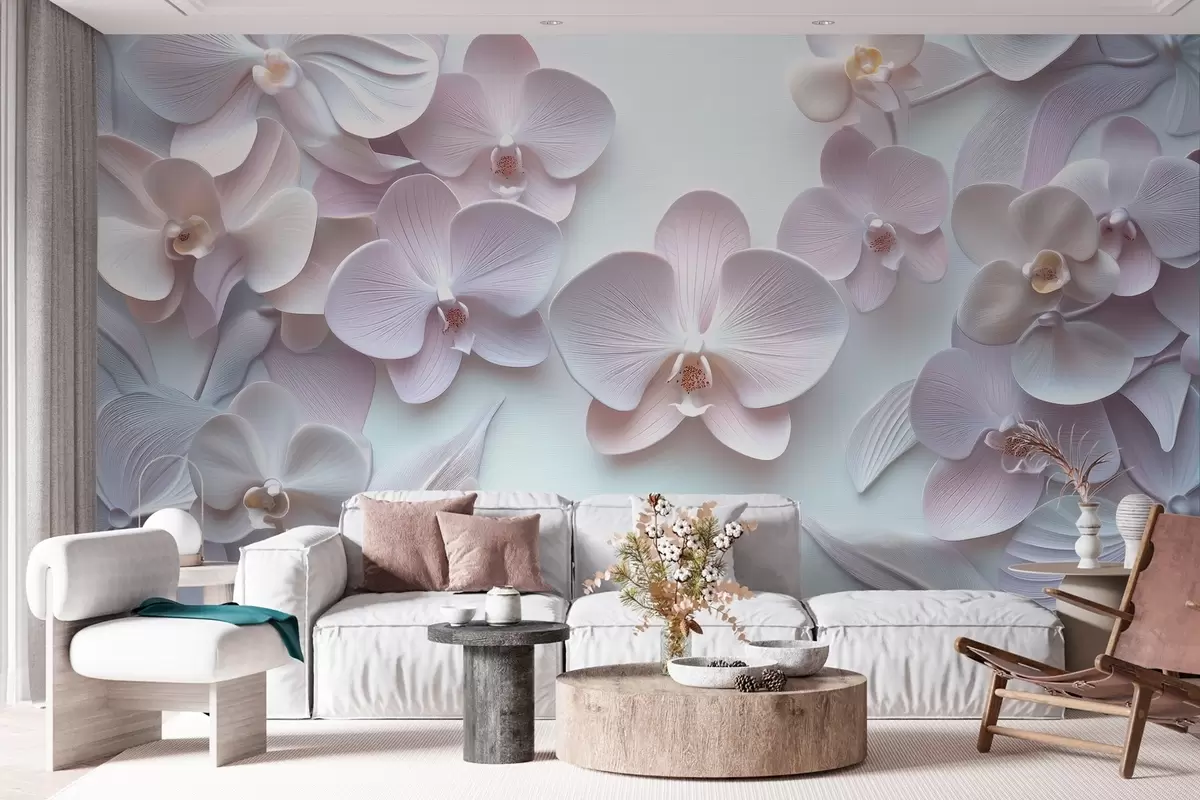 Valokuvatapetti Herkkä archidia kukkia vaaleissa väreissä 3D jäljitelmä Nr w02912