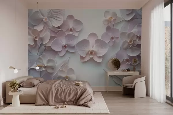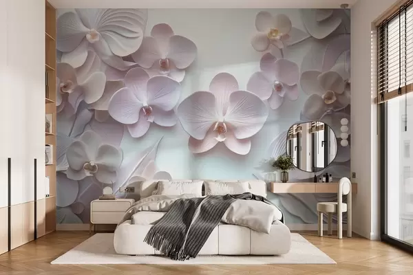Valokuvatapetti Herkkä archidia kukkia vaaleissa väreissä 3D jäljitelmä Nr w02912