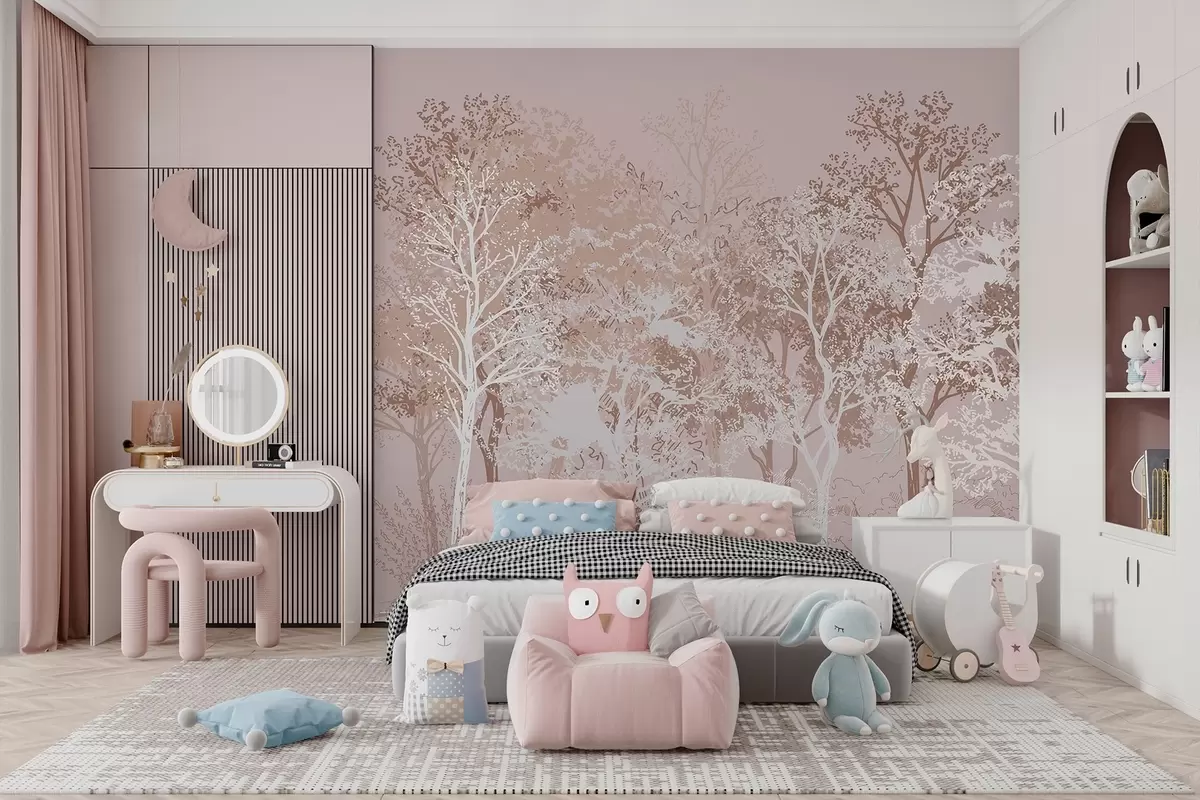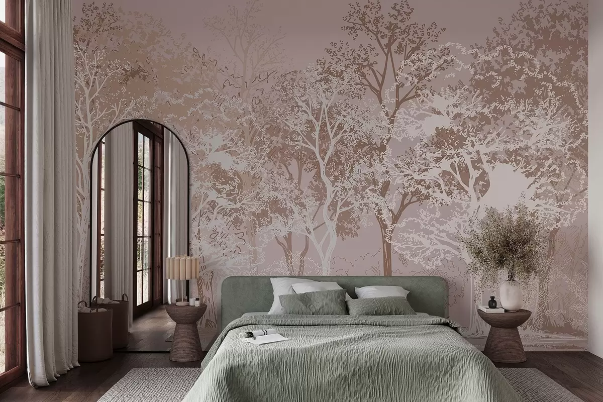 Valokuvatapetti Puut metsässä, minimalismi, luonto, beige väripaletti Nr w02930