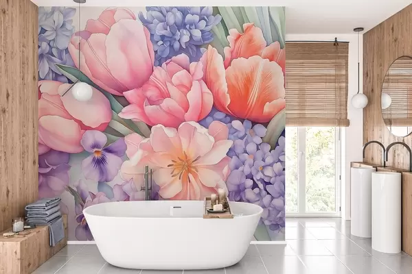Valokuvatapetti Kukkakimppu, tulppaanit, hyasintti, violetit värit, kevät Nr w02941