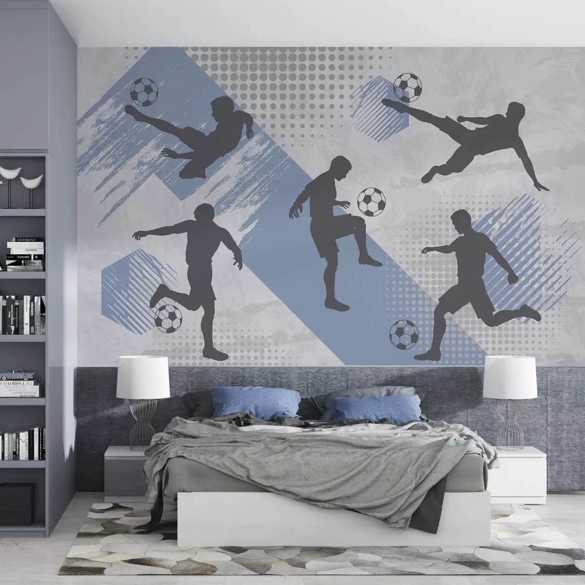 Valokuvatapetti Jalkapalloilijoiden siluetteja abstraktilla taustalla Nr w03001v1