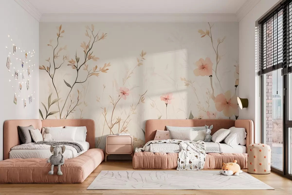 Valokuvatapetti luonnonvaraisia kukkia persikan kukilla Nr w03009