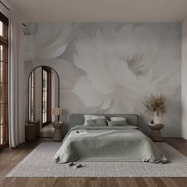 Valokuvatapetti Herkät tuuheat kukat pehmeissä kermanvalkoisissa sävyissä lempeällä taustalla Nr w03045