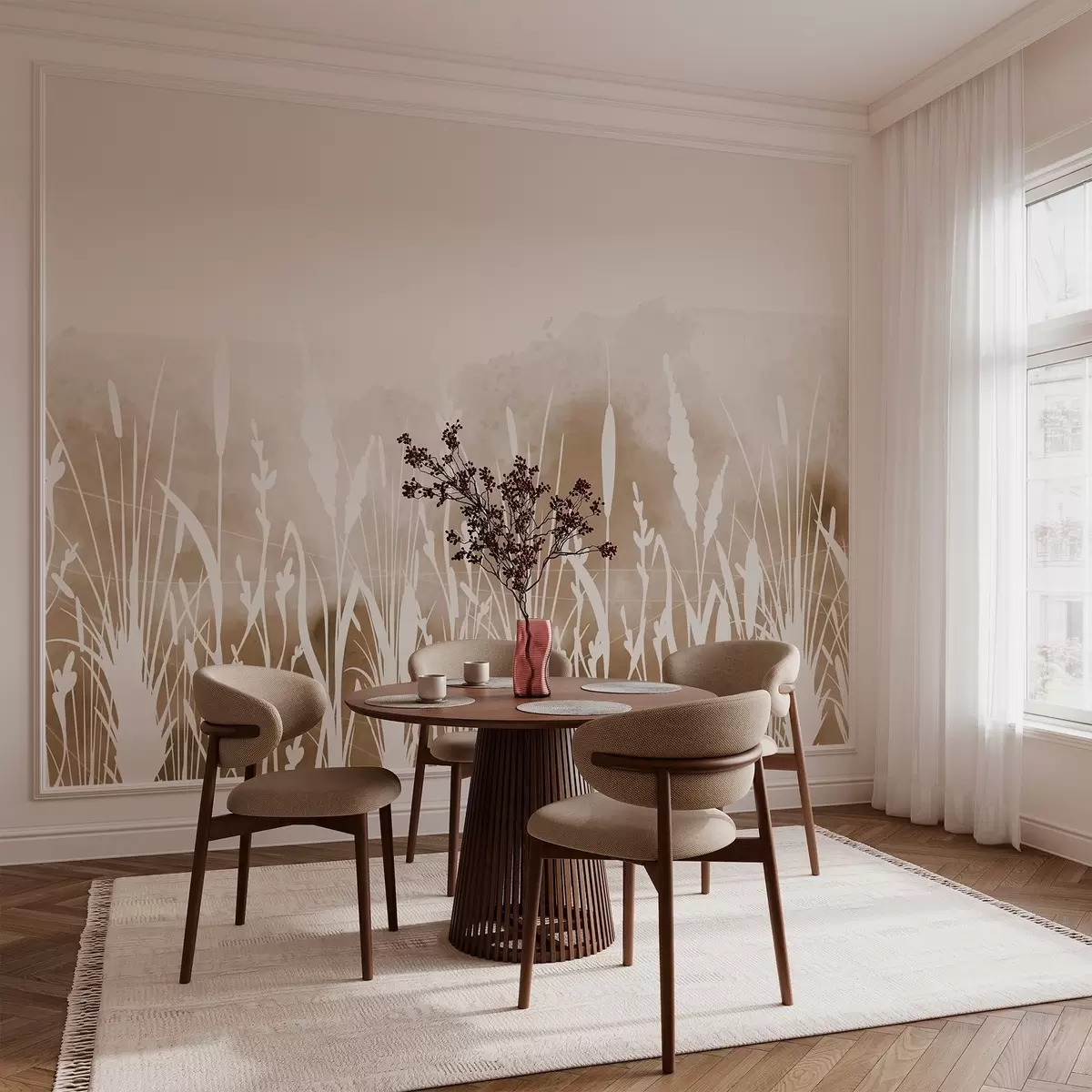 Valokuvatapetti Niittykasvien siluetteja vaalealla taustalla Nr w03134