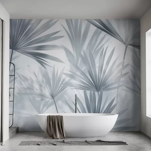 Valokuvatapetti Palmunlehdet, kukkakuvio, minimalismi, trooppinen, harmaat värit Nr w03152v1