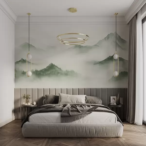 Valokuvatapetti Minimalistinen vuoristomaisema sumussa Nr w03161v3