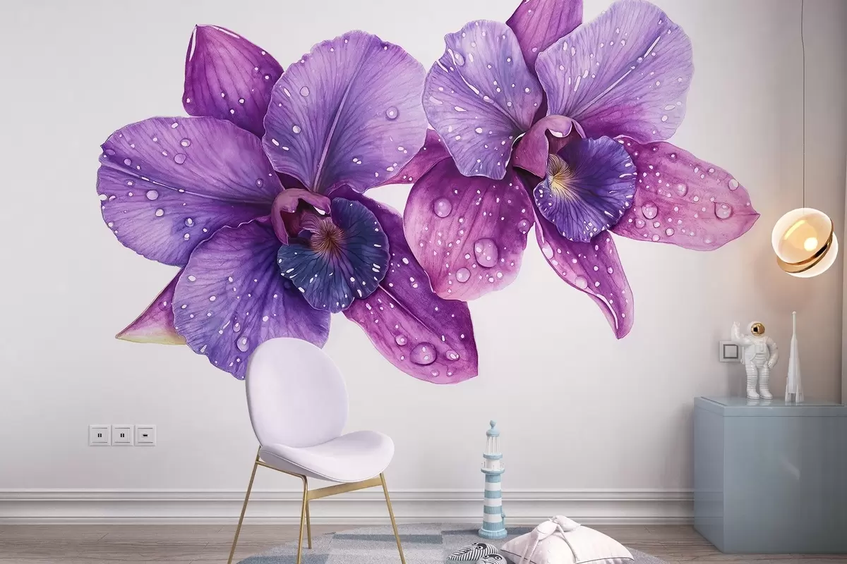 Valokuvatapetti Kaunis orkidea kukkia, akvarelli tyyli piirustus, violetit värit Nr w03164