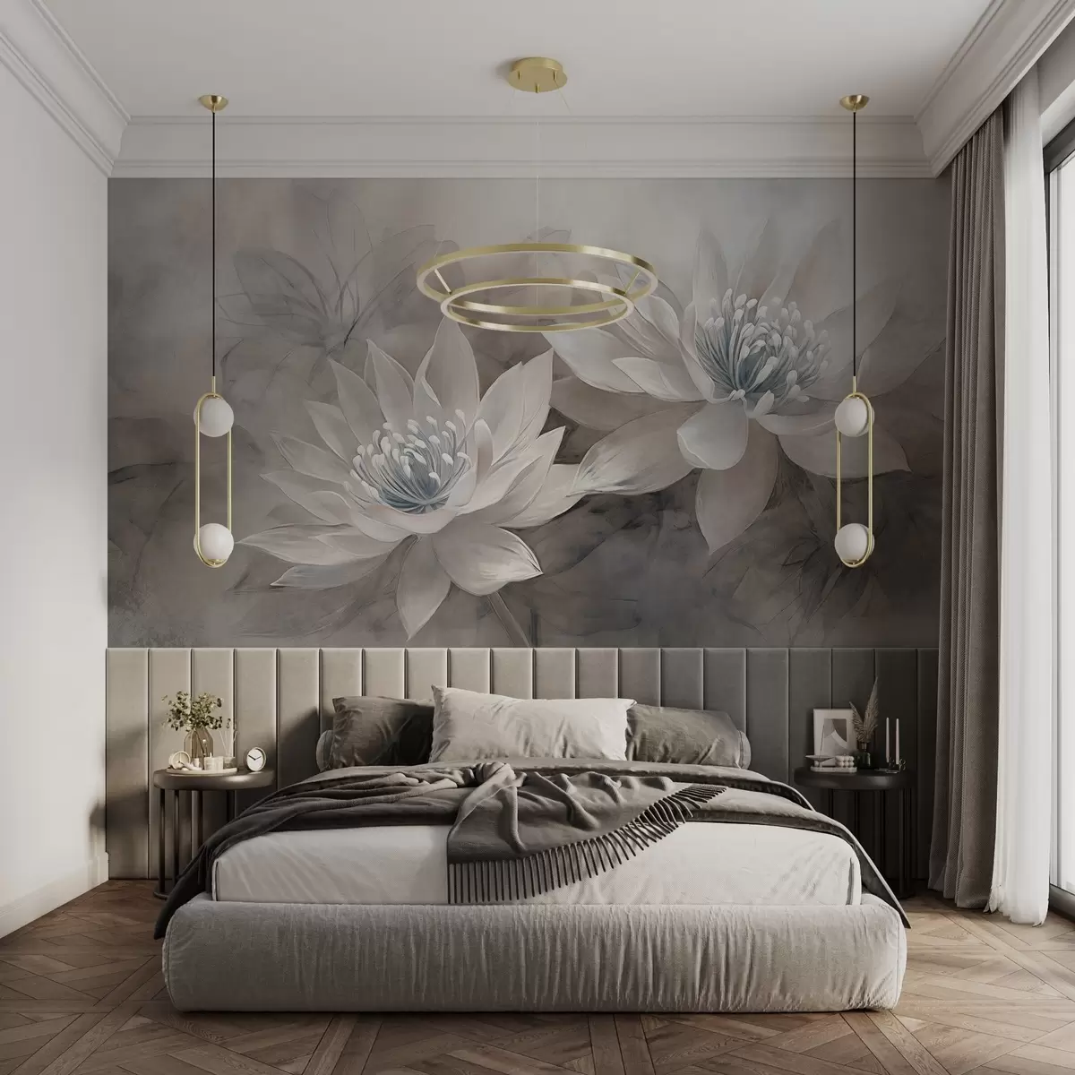 Valokuvatapetti Pari vesivärikukkia grunge seinällä Nr w03188v1
