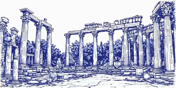 Valokuvatapetti Käsin piirretty raunioitunut kaupunki Nr w03341