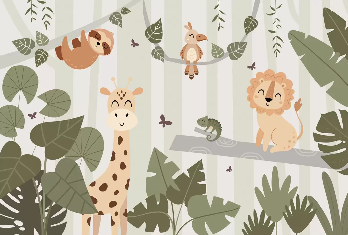 Valokuvatapetti Maisema trooppisten eläinten kanssa Nr w03376