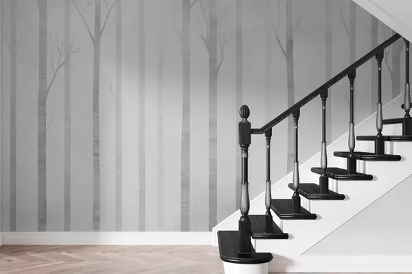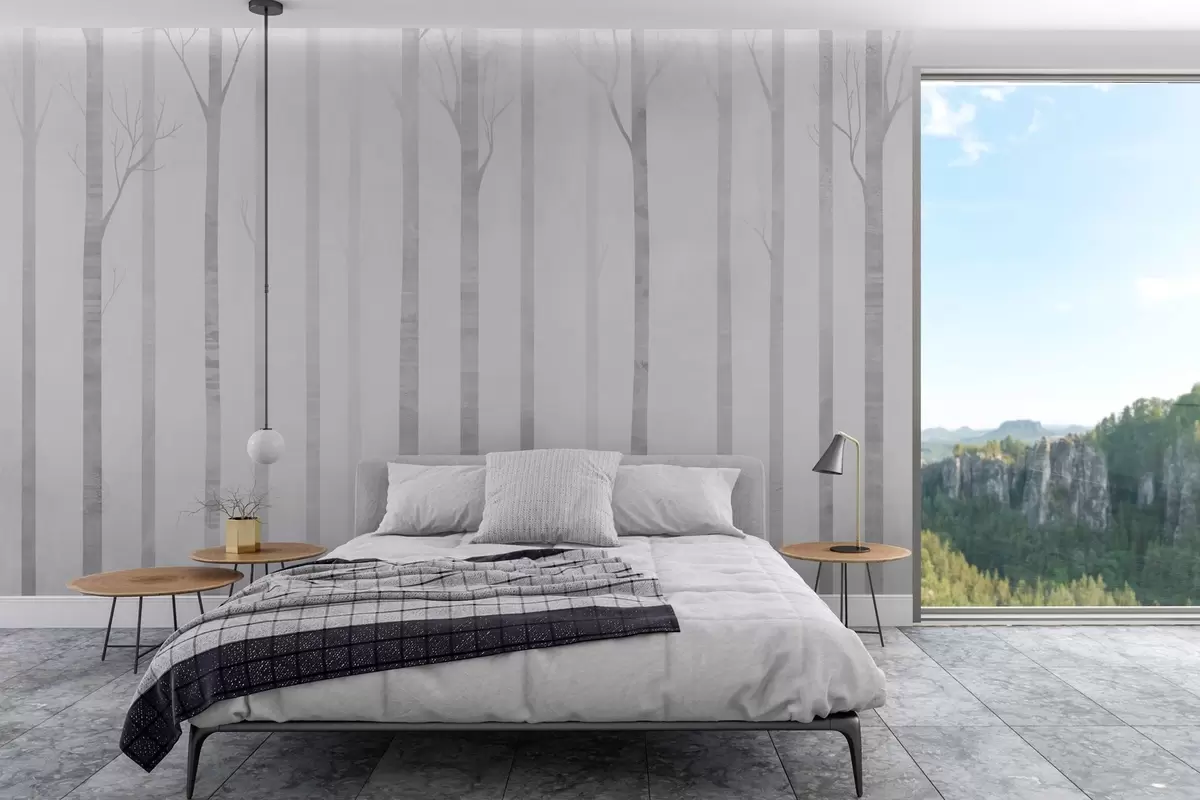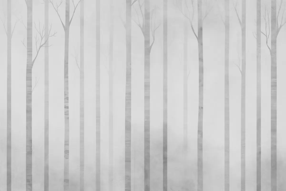 Valokuvatapetti Puiden rungot sumussa harmaasävyinä Nr w03386
