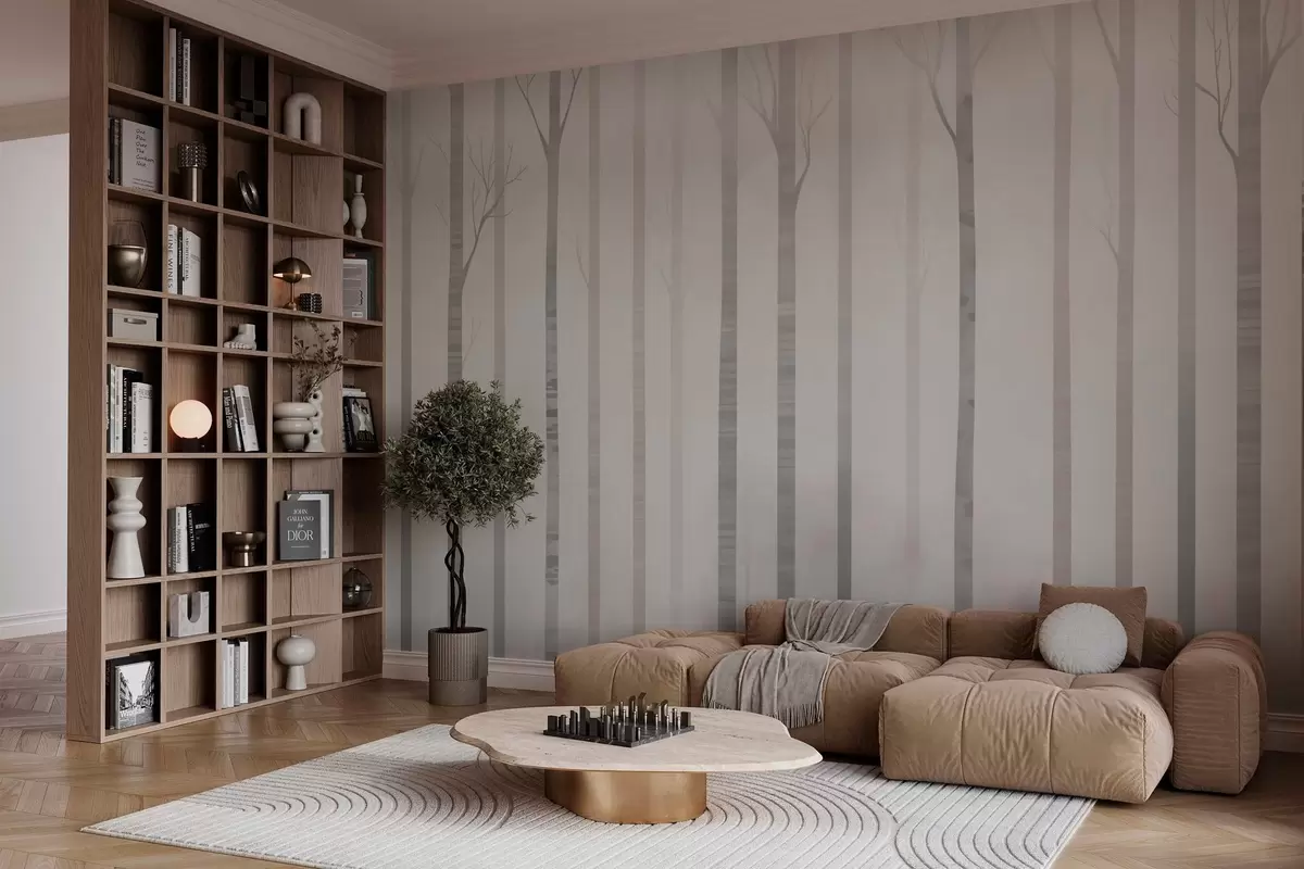 Valokuvatapetti Puiden rungot sumussa Nr w03386v1