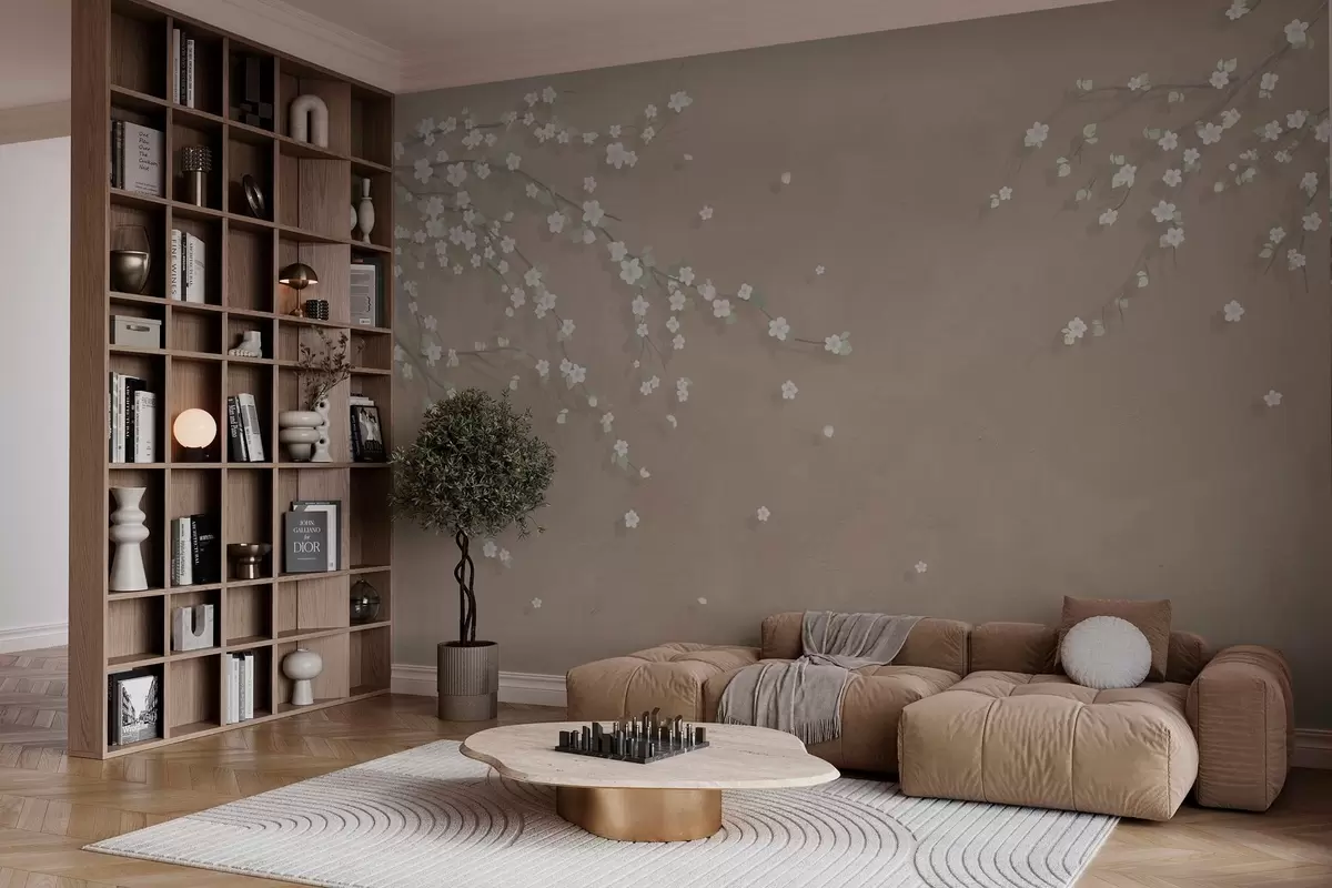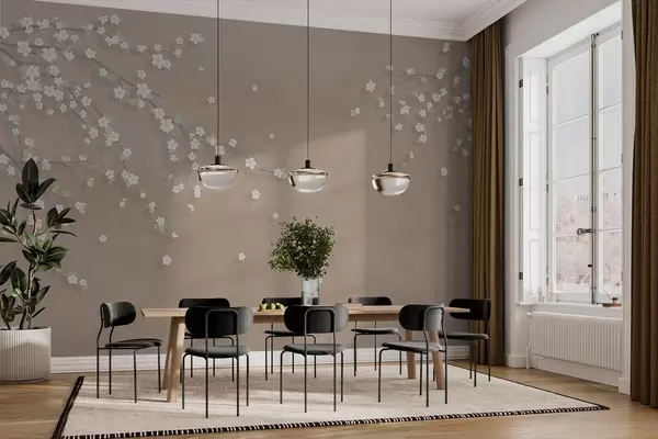 Valokuvatapetti Kukkiva oksa grunge-seinän taustalla Nr w03393