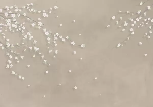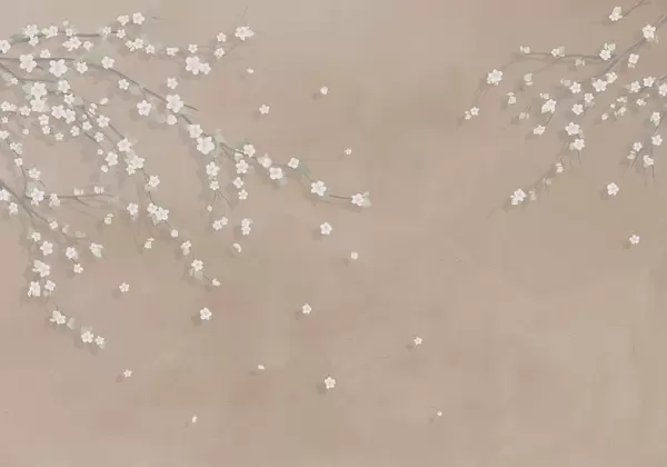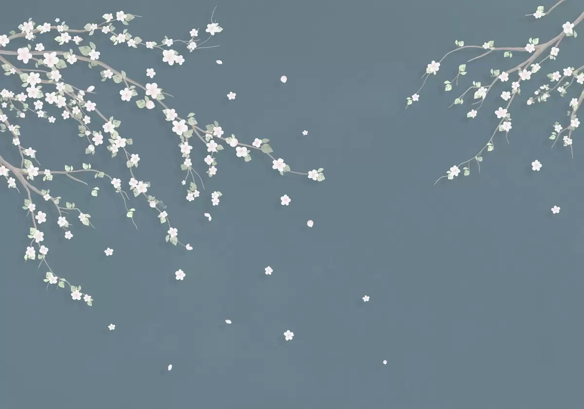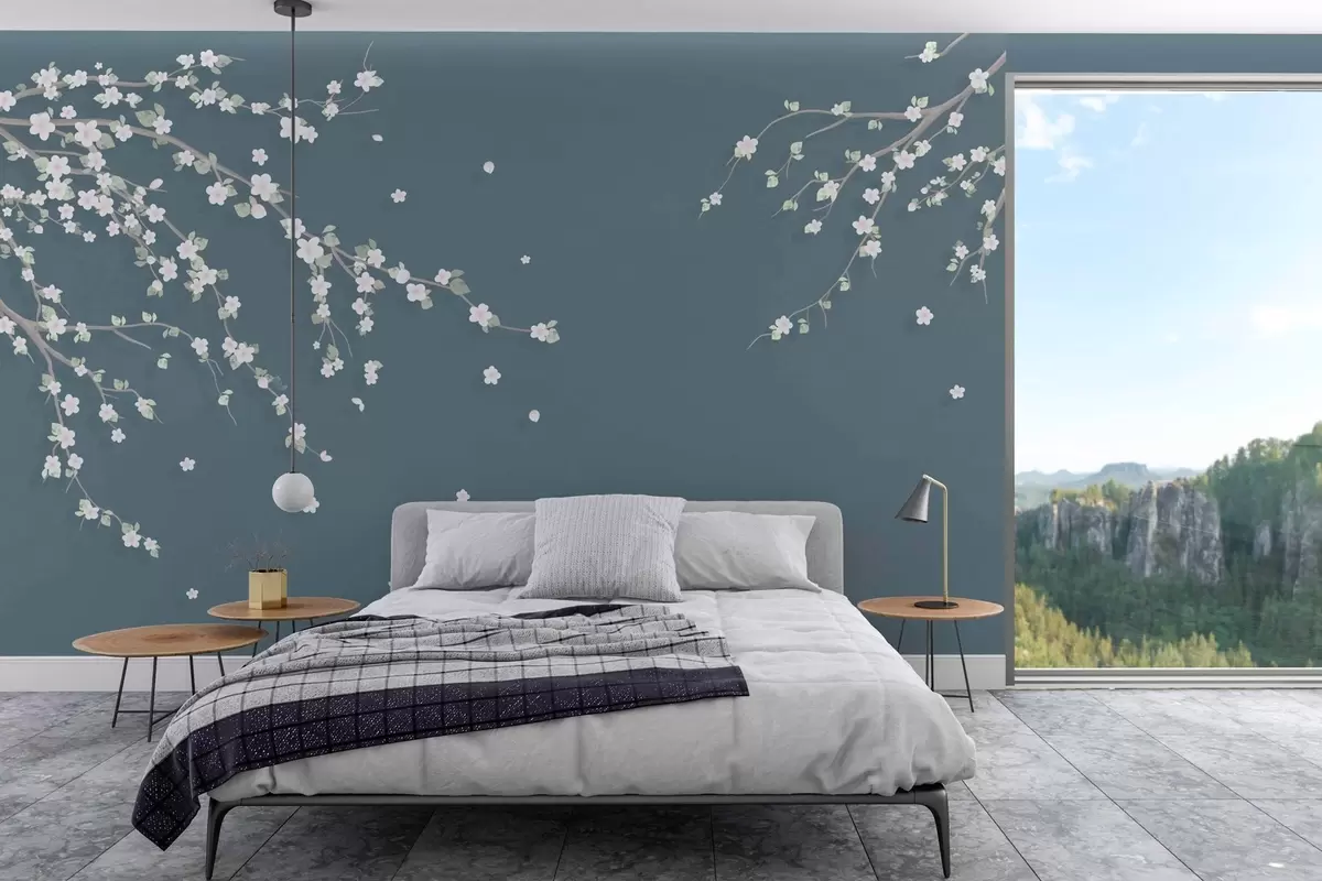 Valokuvatapetti Kukkiva oksa seinän taustalla sinisessä grunge-tyylissä Nr w03393v1