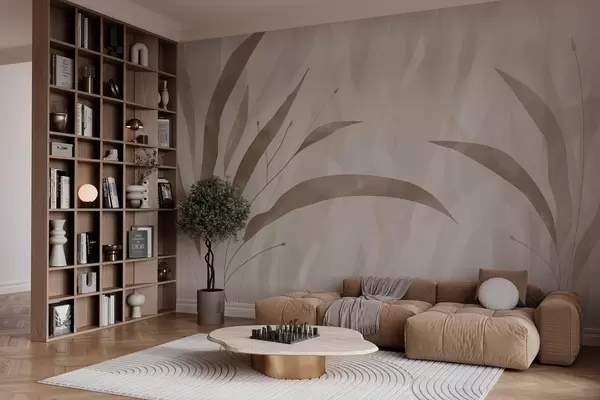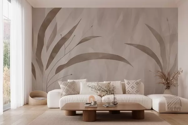Valokuvatapetti Ekotyyliä, kasveja kuvioidulla heterogeenisella taustalla beigen sävyissä Nr w03394