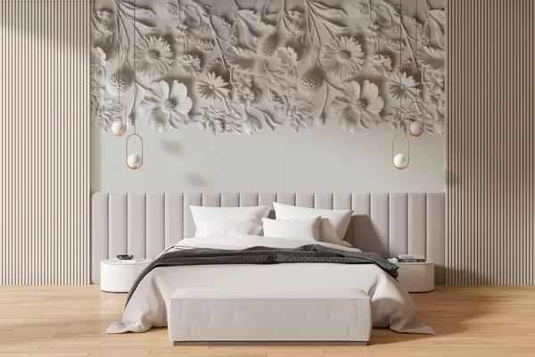 Valokuvatapetti Jäljitelmä kohokuvioitu kukkia päällä maidon värillä Nr w03398v1