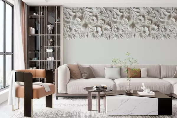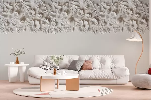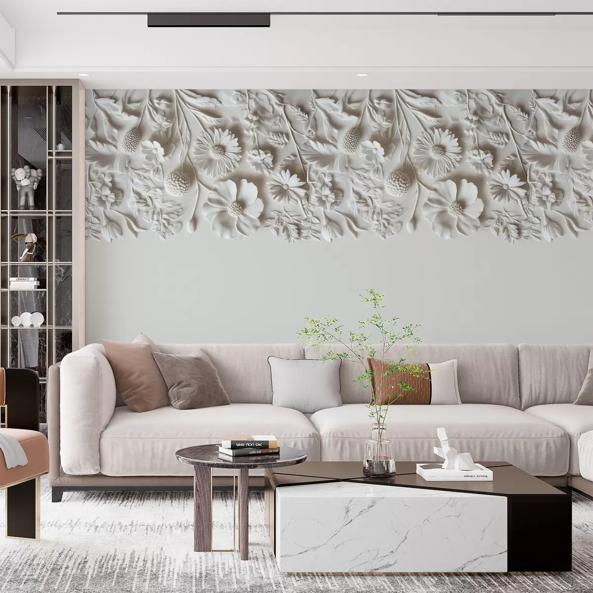 Valokuvatapetti Jäljitelmä kohokuvioitu kukkia päällä maidon värillä Nr w03398v1