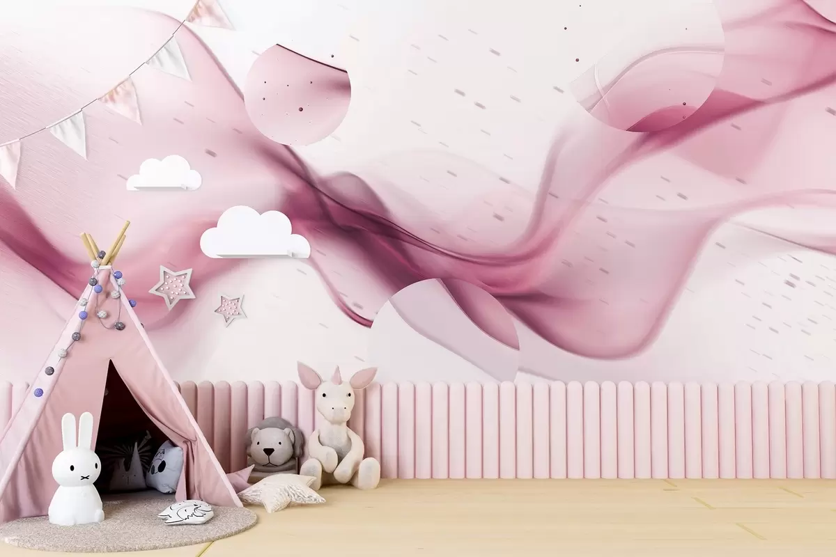 Valokuvatapetti Geometriset aallot abstraktio, epätarkka tyyli, kaltevuus, vaaleanpunaiset värit Nr w03404v1