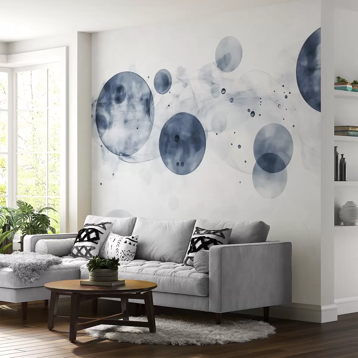 Valokuvatapetti Vesivärityyliset ympyrät, abstraktio, eteerinen, nestemäinen taide, harmaat värit Nr w03405