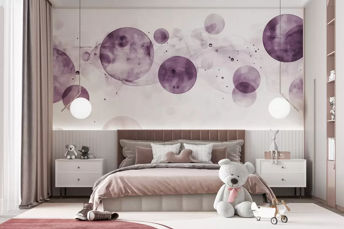 Valokuvatapetti Vesivärityyliset ympyrät, abstraktio, eteerinen, nestetaide, violetit värit Nr w03405v2