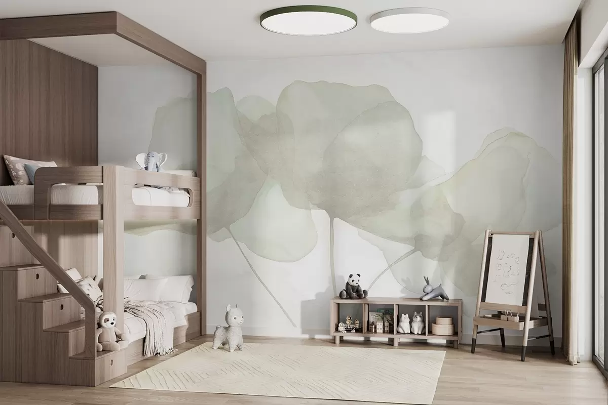 Valokuvatapetti Kauniit kukat, pehmeät pastellit, minimalismi, luonnollinen, maalaismainen, beige ja vihreä Nr w03407
