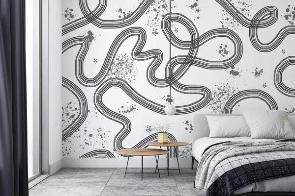 Valokuvatapetti Viivapiirros, maaliroiskeet, minimalismi, harmaa väri Nr w03408v2