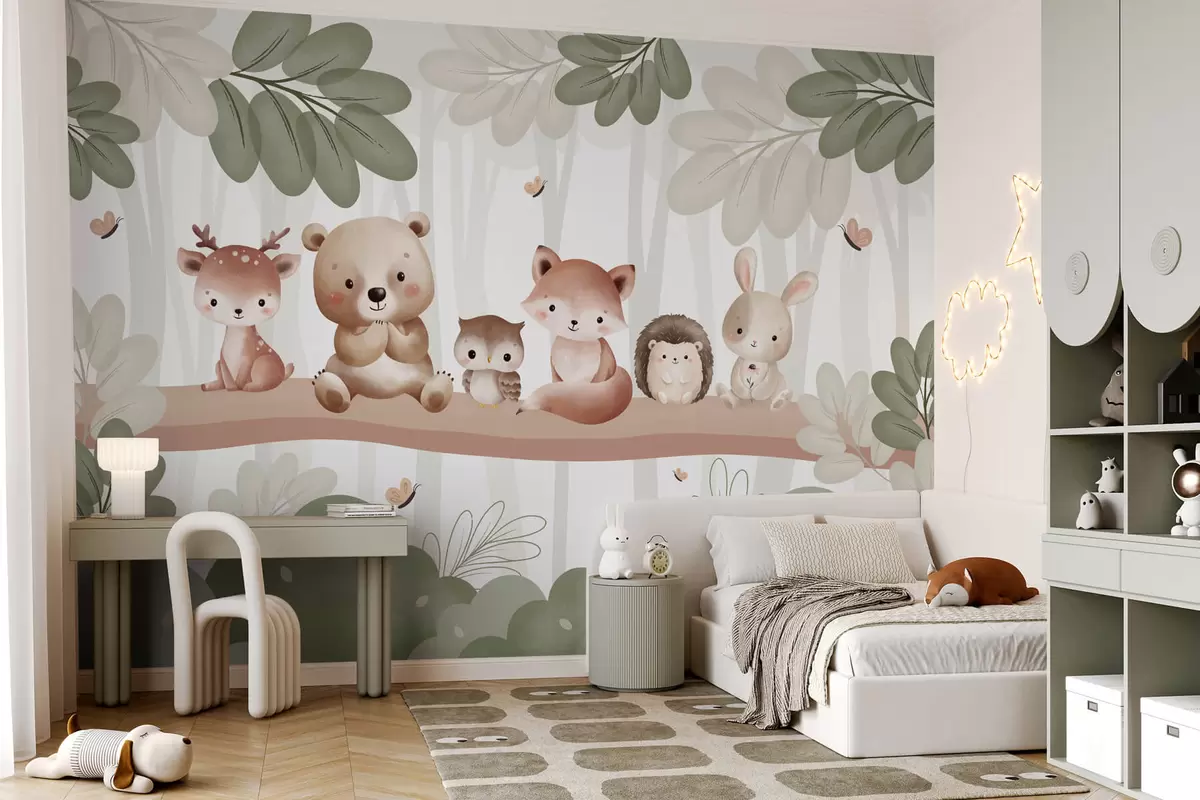 Valokuvatapetti Söpöjä eläimiä metsässä Nr w03411