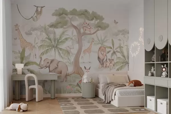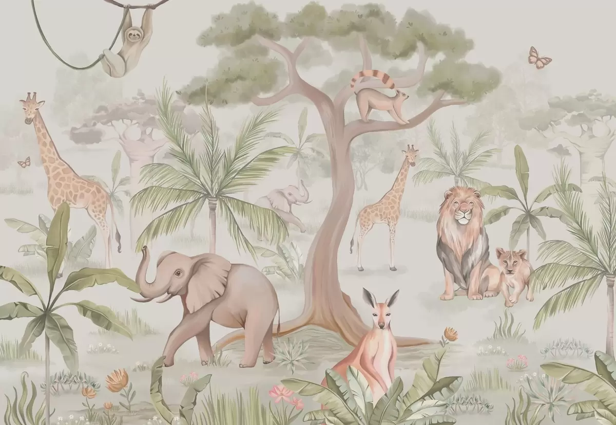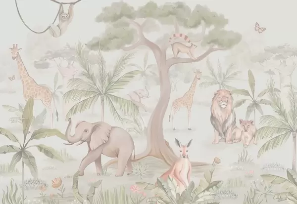 Valokuvatapetti Panoraama viidakosta eläinten kanssa Nr w03444