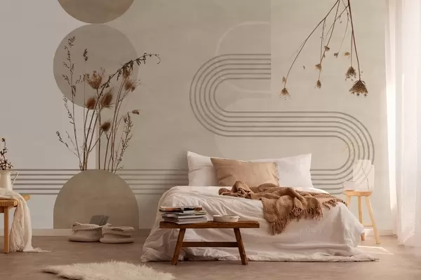 Valokuvatapetti tyylikästä geometriaa ja kuivattuja kukkia beigen sävyissä Nr w03449