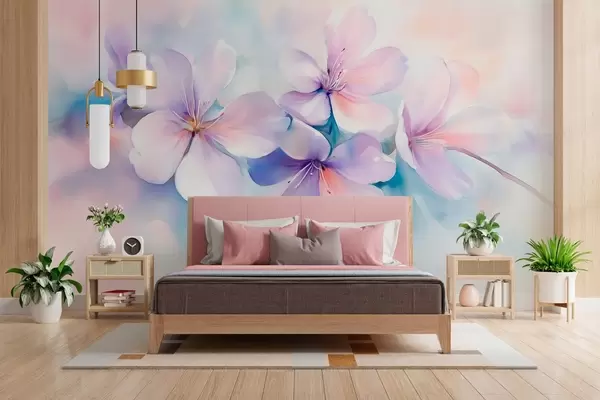 Valokuvatapetti Herkkä haara kukkia vesivärityyliin Nr w03450
