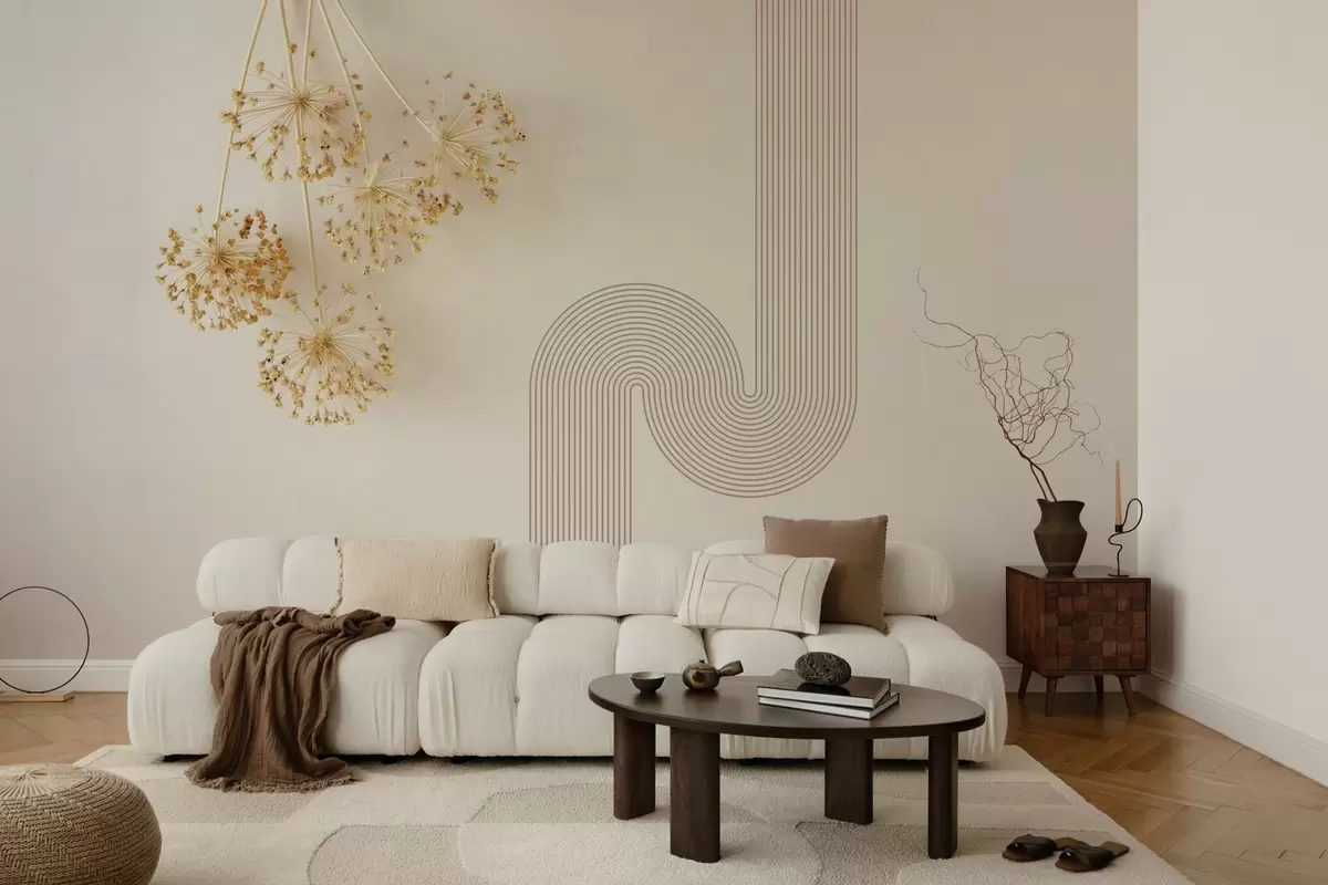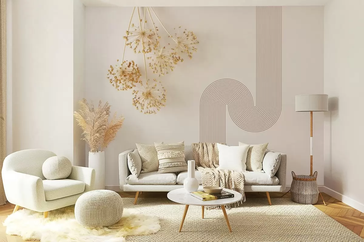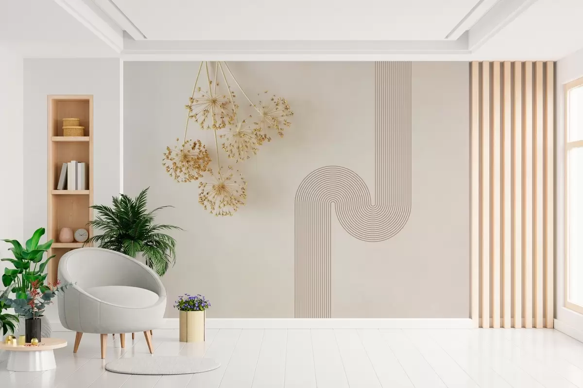 Valokuvatapetti tyylikkäitä kuivattuja kukkia ja viivoja beigen sävyissä Nr w03455