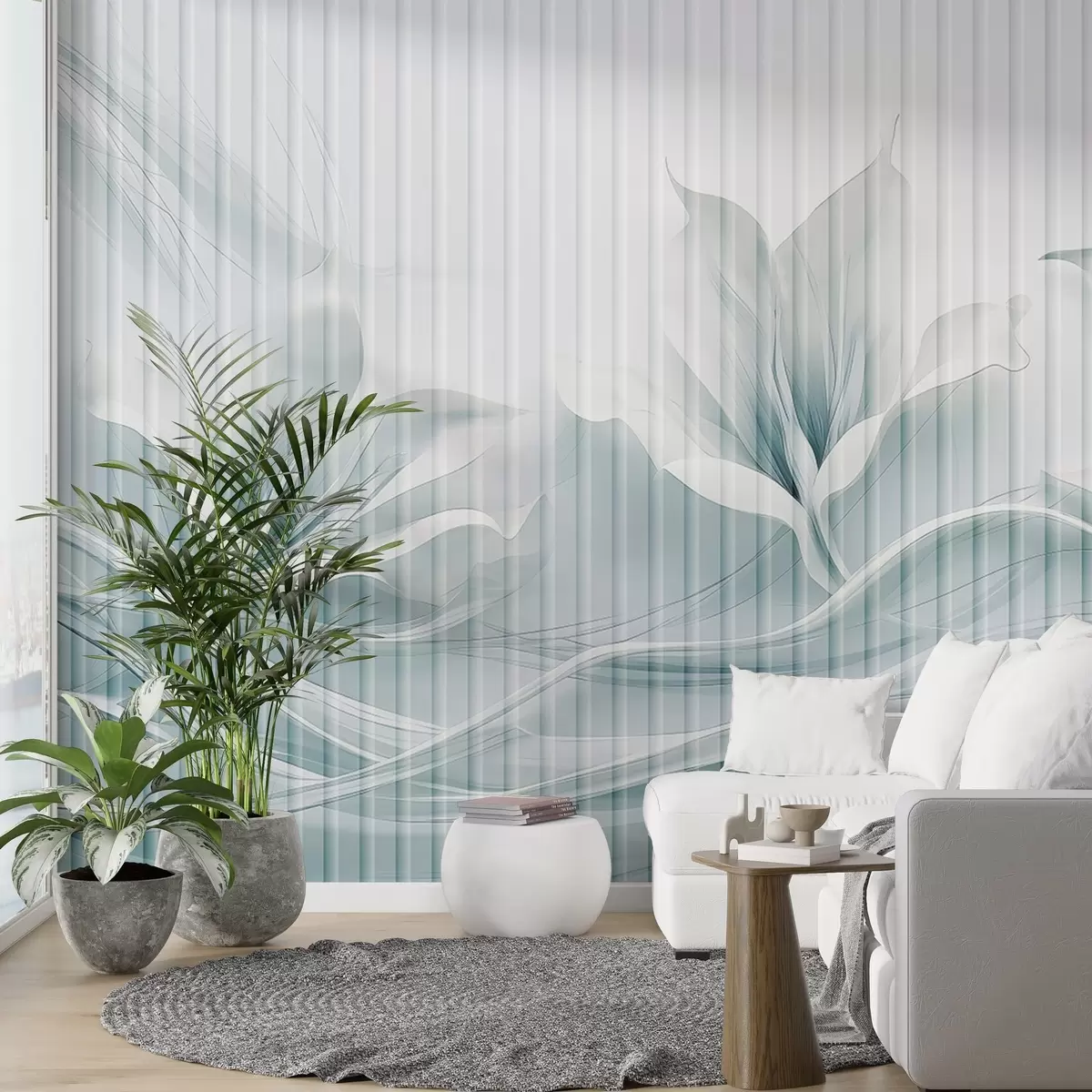 Valokuvatapetti Akvarelli abstrakti kukkia lasin takana Nr w03563v2