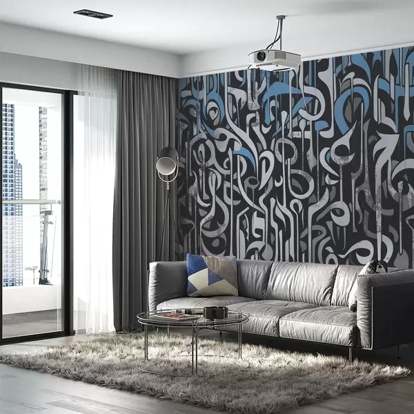 Valokuvatapetti Katutaiteen suunnittelu sinisellä ja harmaalla Nr w03607v1