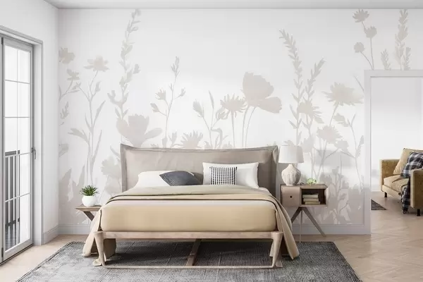 Valokuvatapetti Kesäinen niitty, maalaismainen, kukat, beige väripaletti Nr w03670