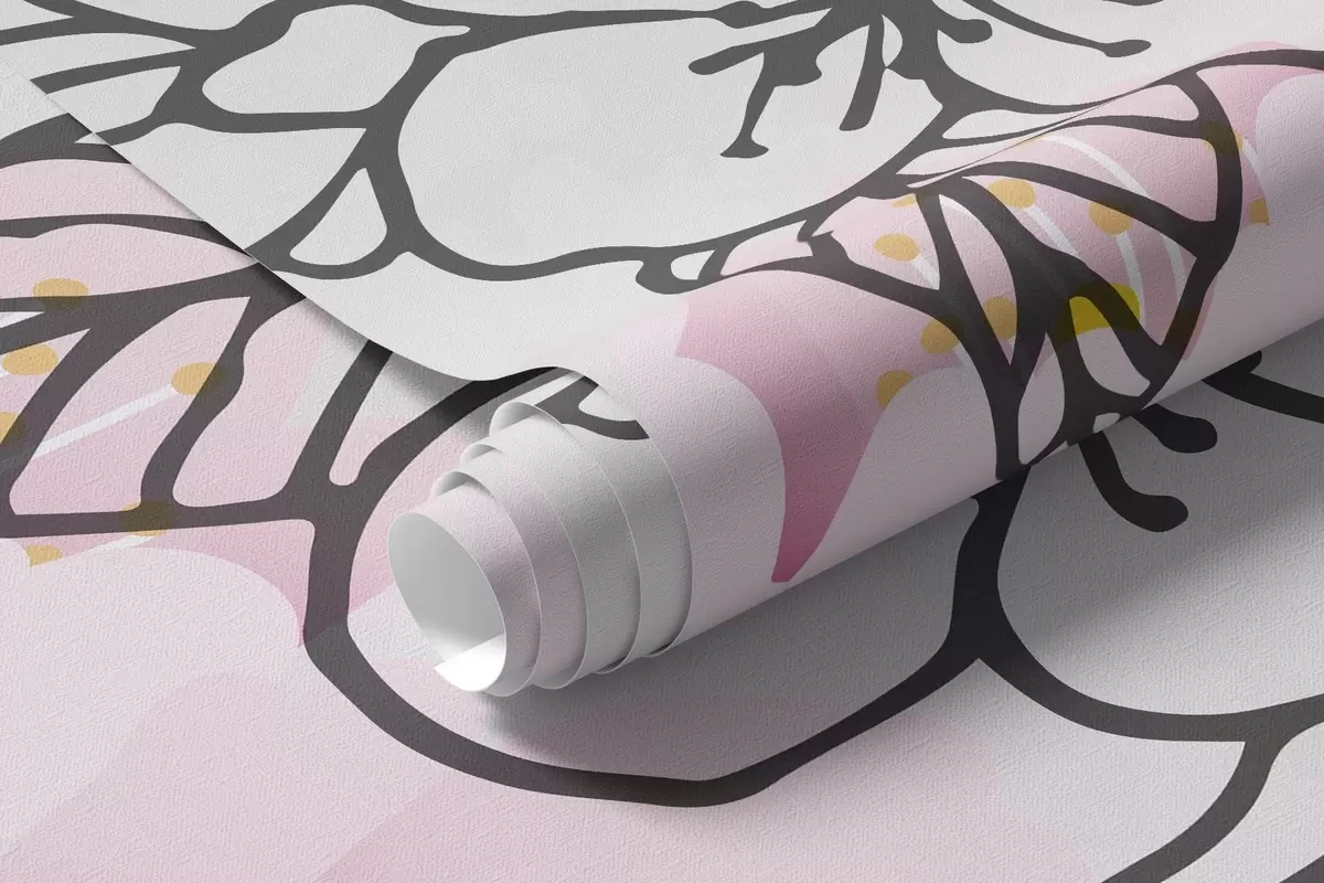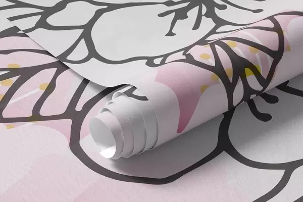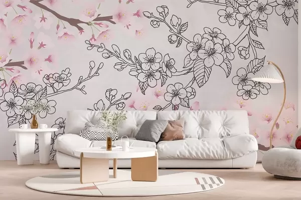 Valokuvatapetti Sakuran oksat piirretty ja värillinen Nr w03711