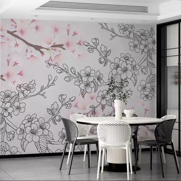 Valokuvatapetti Sakuran oksat piirretty ja värillinen Nr w03711